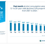 - Past month consumption among 12- to 20-year-olds declined almost 15 percent proportionally from 15.6% in 2021 to 13.3% in 2024. Current consumption among underage persons is at an all-time record low.