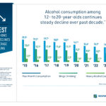 - Slightly more than one in five 12th graders report consuming alcohol in the past 30 days. Current drinking among high seniors is down 39 percent over the past decade, from 35 percent in 2015 to 22 percent in 2024.
